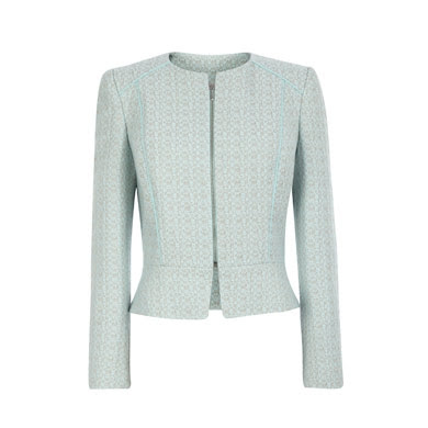 2. Traje de chaqueta tweed blanco y celeste Primark.